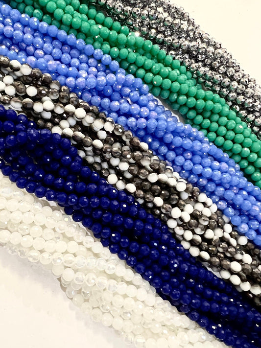 9 Stränge, runder Kristallmix, 4 mm, je 14 Zoll (insgesamt ca. 900 Stück), sehr funkelnder Kristall, Perle für Abstandshalter, Art Deco, Perle zur Schmuckherstellung.