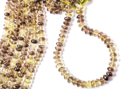 Bio Zitronenquarz Facettierte Rondell 9mm, Natürlicher Zitronenquarz in AAA Qualität Schattierter Schmuckherstellung Halskette, Armbandperlen 10" Strang