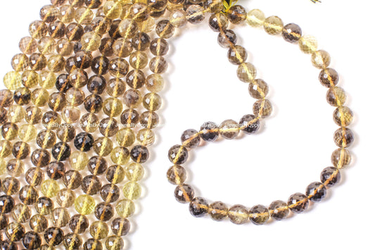 Bio Zitronenquarz facettiert rund 8mm, natürlicher Zitronenquarz in AAA-Qualität, schattiert, für die Schmuckherstellung, Halskette, Armbandperlen, 10" Strang