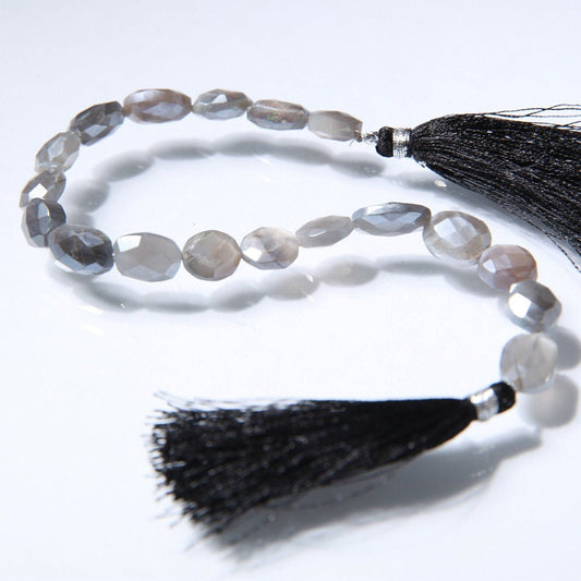 Natürlicher grauer Mondstein, mystisch, facettiert, oval, 10 x 13 – 11 x 17 mm, Edelstein, 8 Zoll Strang, hohe Qualität, grauer auffälliger Mondstein, Perlen zur Schmuckherstellung.