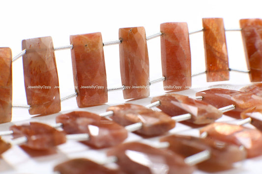Schokoladenmondstein, facettierte rechteckige Kissenform, doppelt gebohrte 9x20mm Edelsteinperle, 14-tlg. Strang