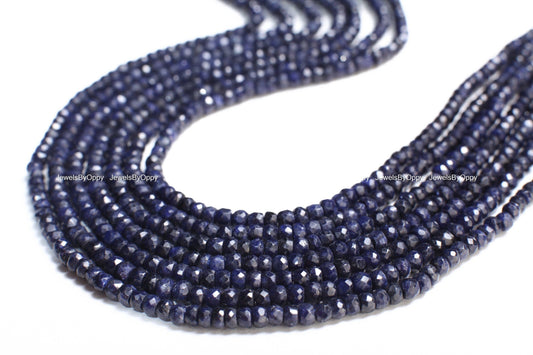 Saphir-Rondell, natürliches facettiertes Rondell 3,5–5 mm, blauer Saphir, Schmuckherstellung, Edelstein-Halskette, Armband