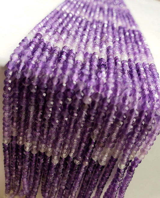 Ombre Amethyst Facettiertes schattiertes Roundel 3–3,5 mm, Schmuckherstellung Halskette, Armband, DIY natürliche Edelsteinperlen 13" Strang