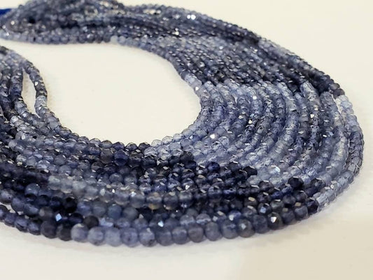Natürlicher, Ombre-Iolith, schattierter 3-mm-Facettendiamant, Mikroschliff, runder Iolith, seltener 12-Zoll-Strang.