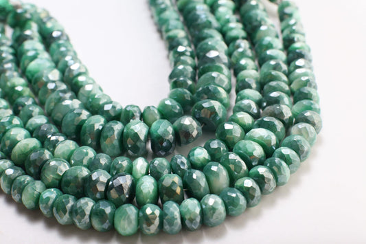Mondsteingrüne Rondell, echter Mondstein, smaragdgrün, mystisch beschichtet, hochwertige facettierte Rondellen in 10 mm Edelsteinperlen, 7,5 Zoll Strang
