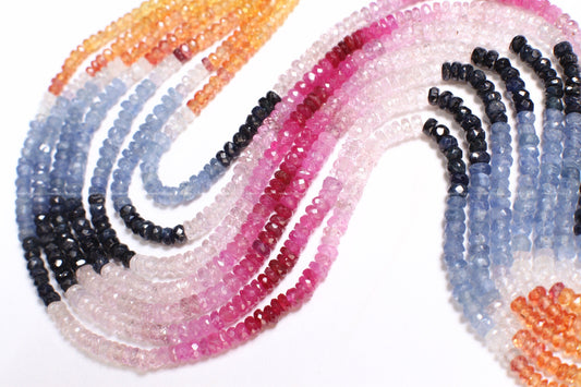 Multi Saphir Rondell, Natürlicher Umba Saphir große Größe 5-5,5mm Facettierte Roundel Edelstein Schmuckperlen in 8"/16" Strang, Hochwertig