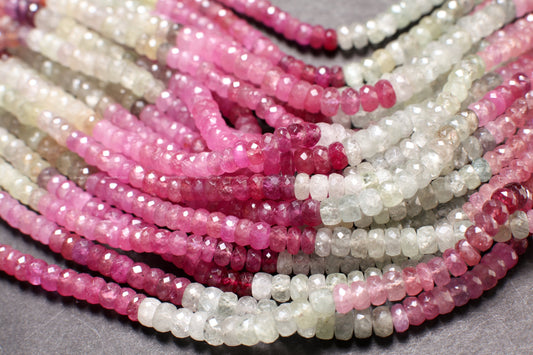 Rosa Silberit Saphir Rondell, Seltenes natürliches rosa Saphir Facettiertes Roundel 2,5-5mm, Schmuckherstellung Edelsteinperlen 3",6",12" Strang