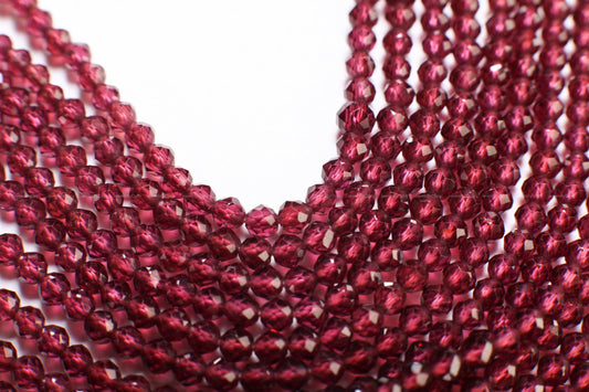 Rhodolith-Granat AAA, mikrofacettiert, 3 mm rund, zur Schmuckherstellung, satte Merlot-Farbe, Edelstein in AAA-Qualität, seltener Granat aus Mosambik, 12" Strang