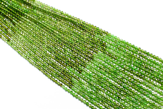 Natürlicher Peridot, 3,5 mm, facettierte, runde Perlen in AAA-Qualität, mikrofacettierte Perlen im Diamantschliff, super schön, zur Schmuckherstellung, 12,5 Zoll