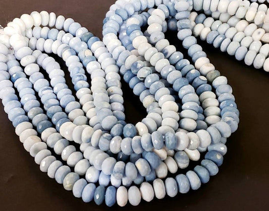 Natürlicher blauer peruanischer Boulder-Opal, blauer Anden-Opal, facettiertes Roundel 9 mm groß, Edelsteinperlen zur Schmuckherstellung, 6", 13" Strang,