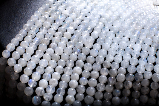 Regenbogen-Mondstein, 5,5–6 mm, glatter, runder Edelstein, Geburtsstein für Juli, Perlen zur Schmuckherstellung, natürlicher Edelstein, 13 Zoll Strang