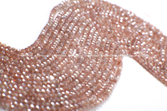 Natürlicher Pfirsich Mystischer AAA Mondstein facettiert 2,2mm rund, Schmuckherstellung DIY Armband, Halskette Ohrringe 12,5" Edelsteinperlen