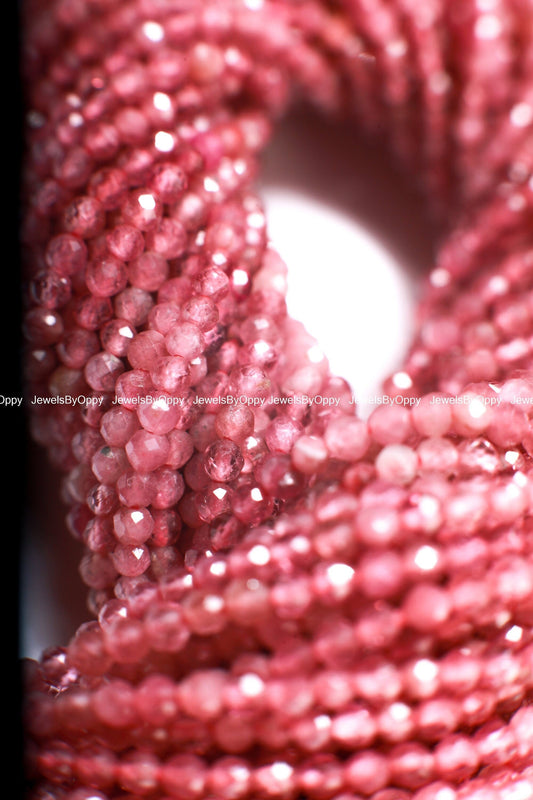 Natürlicher rosa Turmalin, 2 mm und 3 mm, facettierter Diamant, Mikroschliff, rund, 12,75 Zoll Strang