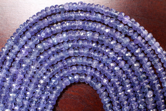 Natürliche, facettierte Tansanit-Rondellperlen, 4,5, 5, 6 mm, groß, wunderschön, violettblau, AAA-Superqualität, zur Herstellung von DIY-Schmuck, 6-, 12-Zoll-Strang.
