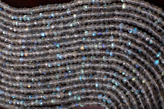 Labradorit-Rondelle, 4–4,5 mm, facettiert, natürlicher mikrofacettierter blauer Blitz-Labradorit-Edelstein, Schmuckherstellung, DIY-Perlen, 12-Zoll-Strang