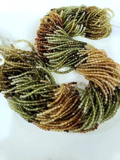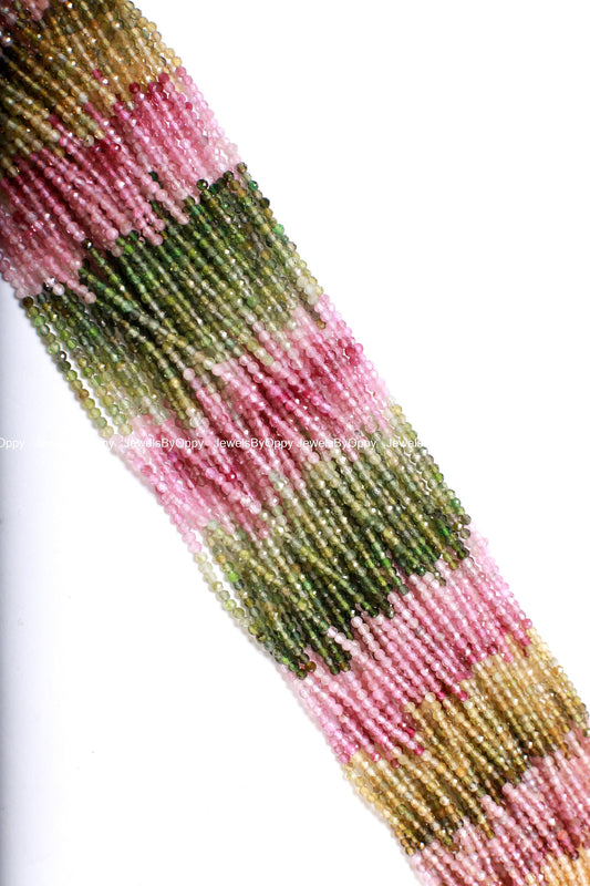 Natürlicher Petro-Turmalin, 2 mm, rund, facettiert, Mikrodiamantschliff, mehrfarbig, 12,75 Zoll Strang, AAA, hochwertige Perlen zur Schmuckherstellung