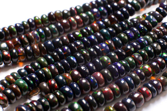 Schwarzer äthiopischer Opal, glatte Rondell 4,5–5 mm, für die Schmuckherstellung, Armband, Halskette, natürliche, hochwertige Edelsteinperlen, 3", 7", 15" Strang