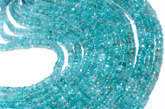 Neonblaue Apatit-Heishe-Reifenperlen, 3–5 mm, 8-Zoll-Strang zur Schmuckherstellung, natürliche Apatit-Edelsteinperlen