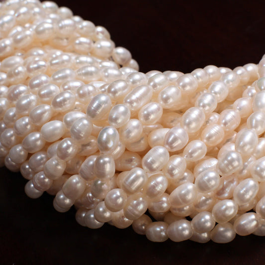 Natürliche Süßwasserperle, 5 x 7–8 mm, Kartoffelperle, guter Glanz, 14 Zoll, zur Herstellung von Perlenarmbändern, Ohrringen und Halsketten