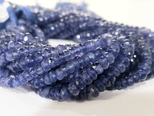 Natürliche Iolith Facettierte Roundel Perlen 4-8,5mm, Hochwertiger seltener großer Iolith, Wassersaphir, Schmuckherstellungsperlen 8" Strang