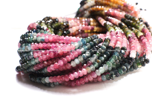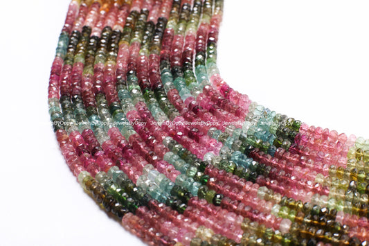 Natürlicher Wassermelonen-Turmalin 4 mm Rondell, facettierte Turmalin-Rondell im Mikrodiamantschliff, Schmuckherstellung, Halskettenperlen 12,75" Strang