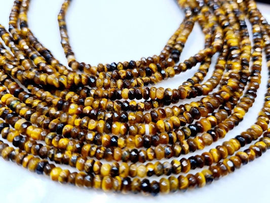 Natürliches Tigerauge, 3,5–4 mm, facettierte Rondell, Schmuckherstellung, natürliche Tigerauge-Edelsteinperlen, 15-Zoll-Strang