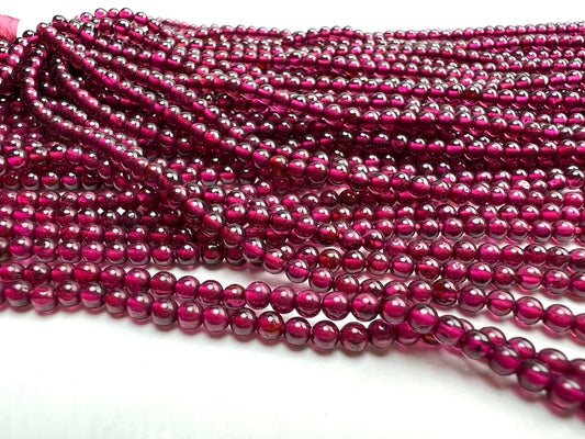 Mosambik Granat 3mm glatt rund, Merlot Dunkelrot Edelsteinperlen zur Schmuckherstellung, Seltener, wunderschöner Edelsteinstrang 13"