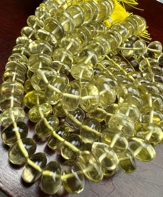 Natürlicher Zitronenquarz, glatte Reifenrad-Rundperlen, Schmuckherstellung, schöne Qualität, 9–11 mm, 2 Größen, 0,8 Zoll Strang