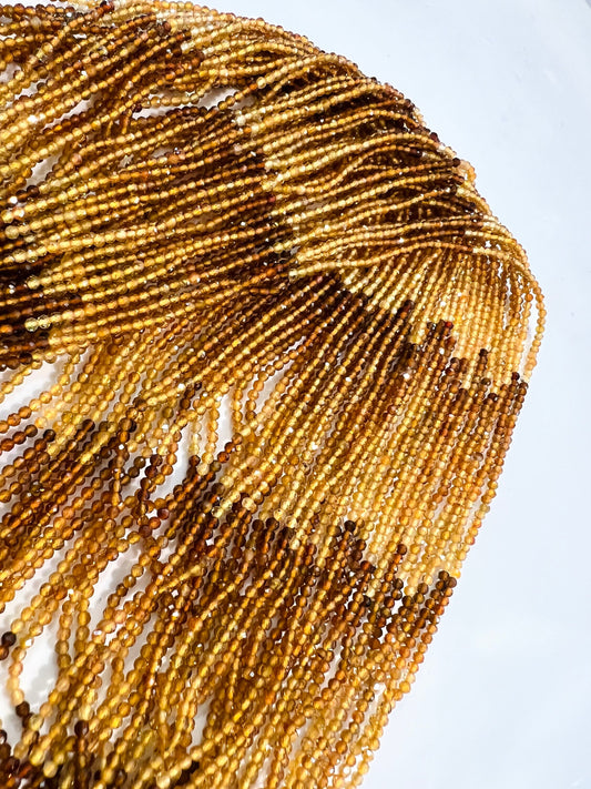 Natürlicher gelber Turmalin 2 mm, mikrofacettiert, diamantgeschliffen, gelbbraun schattiert, runde Perlen. AAA-Qualität, seltene Perle, 12,5 Zoll, Std. zur Schmuckherstellung