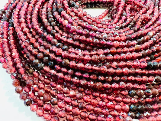 Mosambik Granat 3mm facettiert rund Merlot Dunkelrot schattierte Perlen Schmuckherstellung natürlicher Edelstein Seltener, wunderschöner Edelstein 12,25" Strang