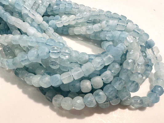 Natürlicher Aquamarin, facettiert, 4 x 4 mm, Würfel, himmelblau schattierte Perlen, Schmuckherstellung, 12,5 Zoll Strang. Hohe Qualität