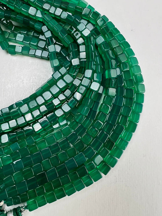 Echter grüner Onyx, quadratischer Würfel, glatt, 5,5–6,5 mm, AAA-Qualität, natürliche Edelsteinperlen zur Schmuckherstellung, 8-Zoll-Strang