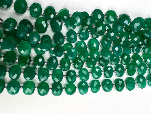 Grüne Onyx-Puffperlen, oval, facettiert, 11 x 13–14 mm, mittig gebohrt, natürliche Edelsteinperlen, AAA-Qualität zur Schmuckherstellung, 8 Stück 4 Zoll oder 16 Stück volle 8 Zoll