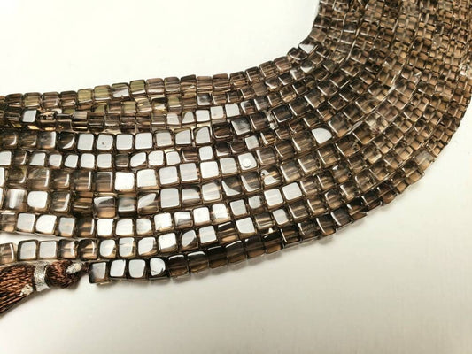 Natürlicher Rauchquarz, quadratischer Würfel, 4–4,5 mm, Perle zur Schmuckherstellung, 20,3 cm Strang, ca. 48 Stück