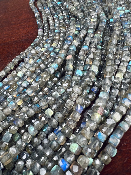 Natürlicher Labradorit, 4,5 mm, quadratische Würfelperlen zur Schmuckherstellung, 10"-Strang, ungefähr 55 Stück