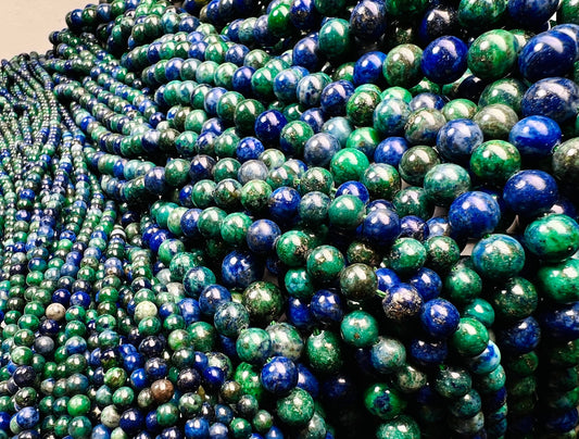 Azurit, glatte, runde Azurit-Malachit-Perle in AAA-Qualität, natürliche Edelsteinperlen zur Schmuckherstellung. 4 mm, 6 mm, 8 mm, 10 mm, 15,5 Zoll, ganzer Strang