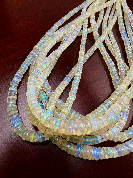 Echter äthiopischer Feueropal, Welo-Opal 3,5–7,5 mm, facettiert, abgestuftes Heishi-Rad-Rondell, feuriger Opal in AAA-Qualität, 0,8”, 16” Strang