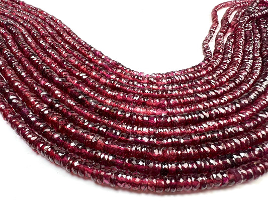 Mosambik Granat Heishi Schliff 4mm facettierte Rondell, Merlot Dunkelrot Schmuckherstellung Edelsteinperlen, Seltener, schwerer Edelstein 6",12" Strang