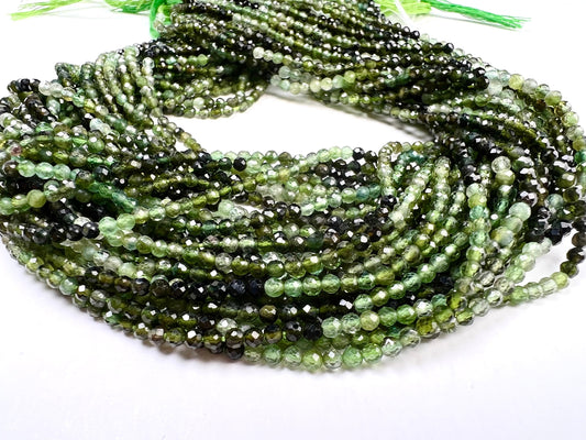 Natürlicher grüner Turmalin 2,3 mm, mikrofacettierte, schattierte runde Perlen, seltene grüne Turmalin-Perlen zur Schmuckherstellung, 12,5-Zoll-Strang