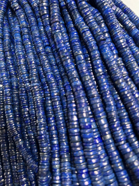 Echte Lapislazuli glatte Heishi 6,5–7 mm Roundel Unterlegscheibenperlen 8" Strang AAA Bright Blue Gold Matrix Natural Lapis