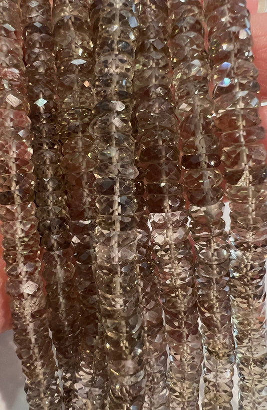 Natürlicher, facettierter Rauchquarz-Reifen-Heishi-Rad-Rundstein, 6–7 mm, AAA-Qualitätsperlen, 8-Zoll-Strang zur Schmuckherstellung.