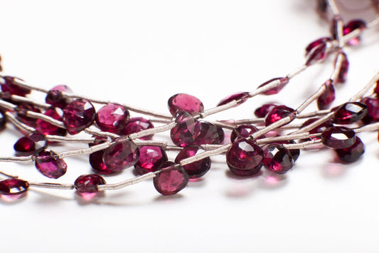 Rhodolith Granat AAA Mikro facettiert 4x6-5x7mm Briolette Tropfen, Schmuckherstellung satte Merlot Farbe, Seltener Granat aus Mosambik, Geburtsstein für Januar