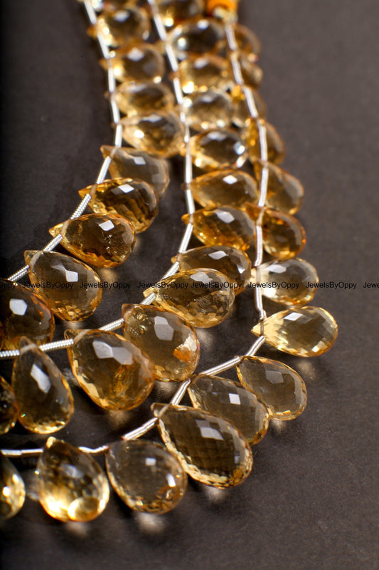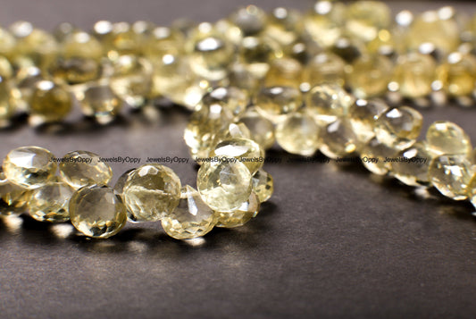 Bio Zitronenquarz Facettierte Zwiebelform 7,5-9mm, Natürlicher Zitronenquarz in AAA-Qualität Schattierte Briolette Schmuckherstellung Halskette, Armbandperlen