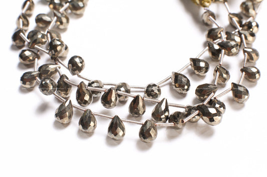 Pyrit-Briolette, facettiert, 6 x 9 mm, Tropfenform, Perlen zur Schmuckherstellung, 1 Strang, 20 Stück, super funkelnd, schweres Gewicht.