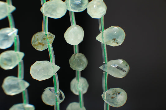 Natürlicher Prehnit, grüner Turmalinquarz, facettierte Briolette-Tropfenform, 6 x 9 mm, Edelsteine, seitlich gebohrte Perlen, 16-Zoll-Stränge, 44 Stück, Einzel-/Massenware