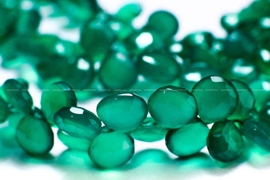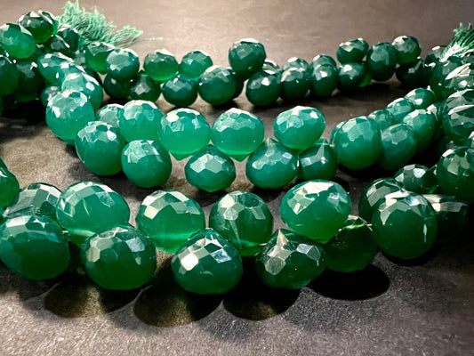 Grüner Onyx, facettierte Tropfenform, 8–9, 9–10, 10–11 mm, herzförmiger Birnentropfen, Edelstein zur Schmuckherstellung, dunkelgrüner Onyx, natürlicher Edelsteintropfen.