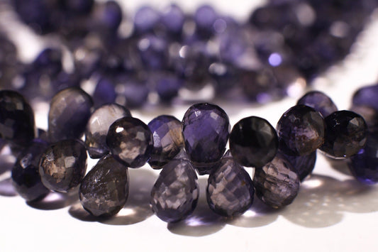 Echter Iolith-Wassersaphir, facettiert, rund, Tropfen-Briolette, 5 x 9–7–11 mm, wunderschöner seltener Edelstein zur Schmuckherstellung, Perlen