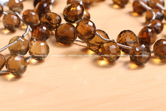 Echter Whiskyquarz, Cognacquarz, facettierte Tauzwiebelform, Briolette, 8,5–9,5 mm, Edelsteinperlen zur Schmuckherstellung