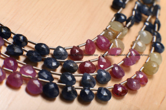 Facettierter Herztropfen mit mehreren Saphiren, natürlicher mikrofacettierter Tropfen mit mehreren Saphiren, 7–8,5 mm, Edelsteinperle zur Schmuckherstellung zum Selbermachen.