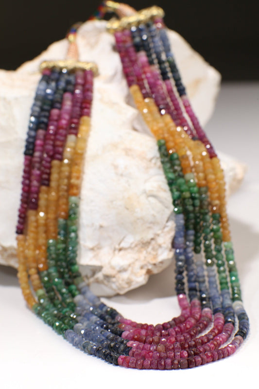 Halskette mit natürlichen, mehrreihigen Saphiren, 3,5 mm, facettierten runden Edelsteinen, 41,9 cm, verstellbar